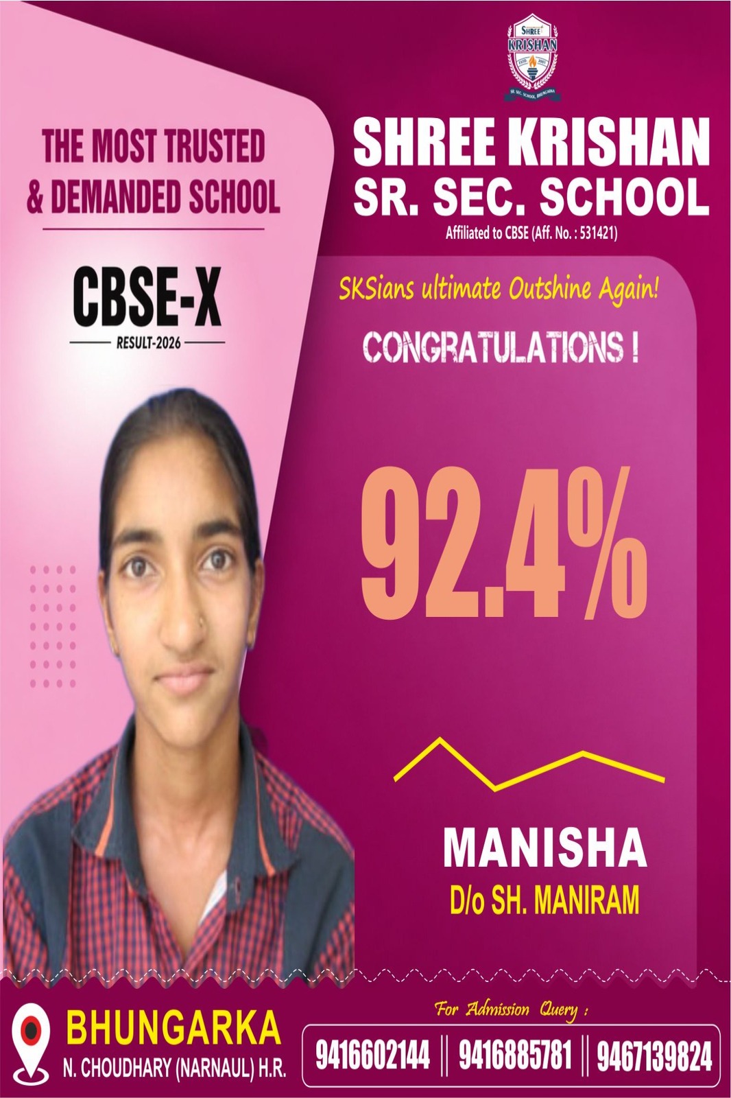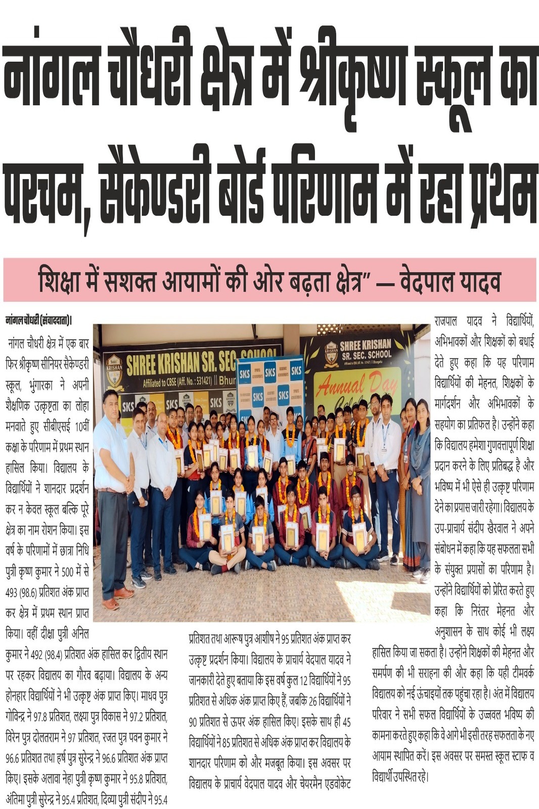 At Shree Krishan Senior Secondary School, Bhungarka our mission, through combined effort of staff, parents and students, is to provide students a strong foundation in basic skills, introduce them to arts and foster positive work ethics